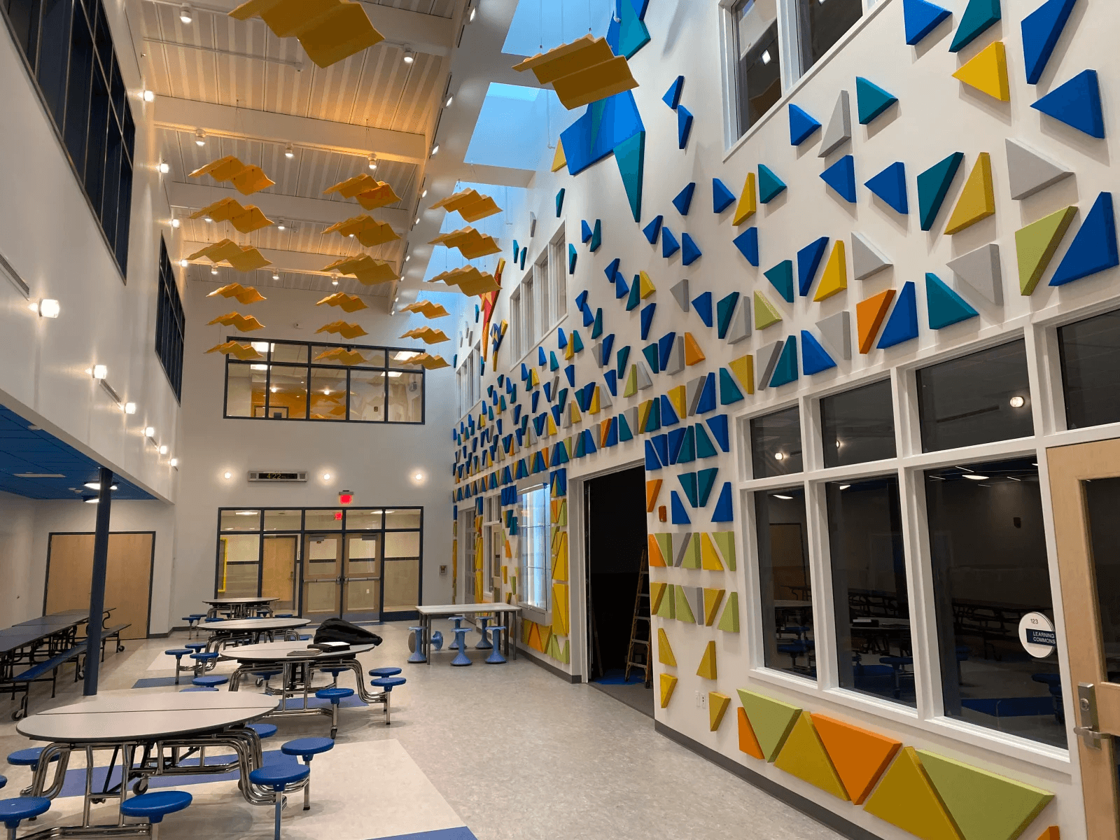 سالن آمفی‌تئاتر مدرسه با امکانات صوتی و تصویری پیشرفته، مناسب برگزاری مراسم، جشن‌ها و برنامه‌های فرهنگی است.