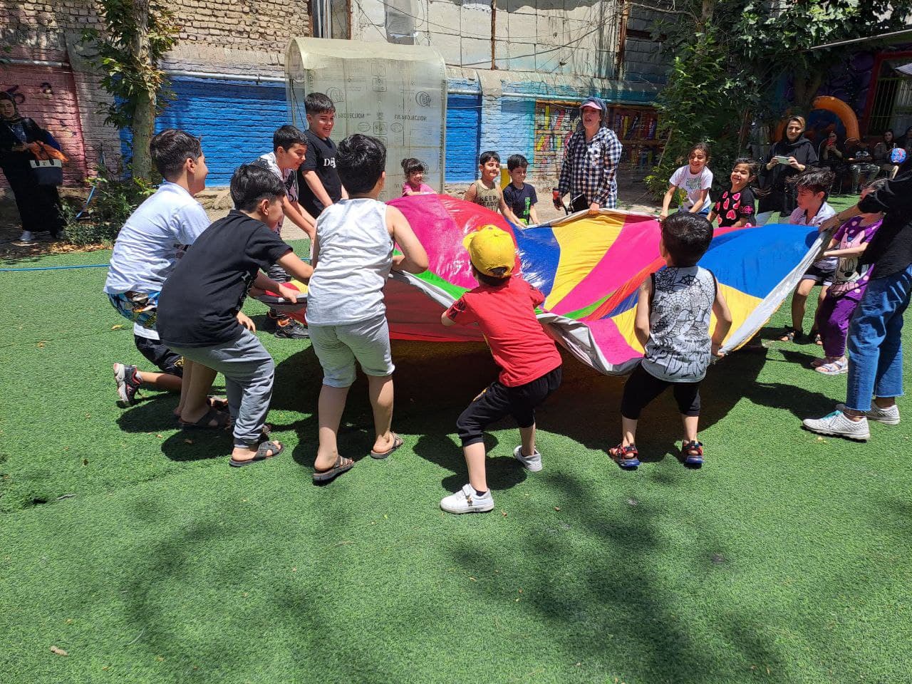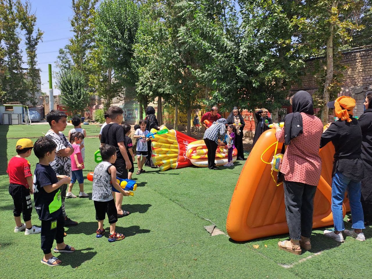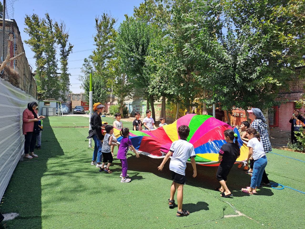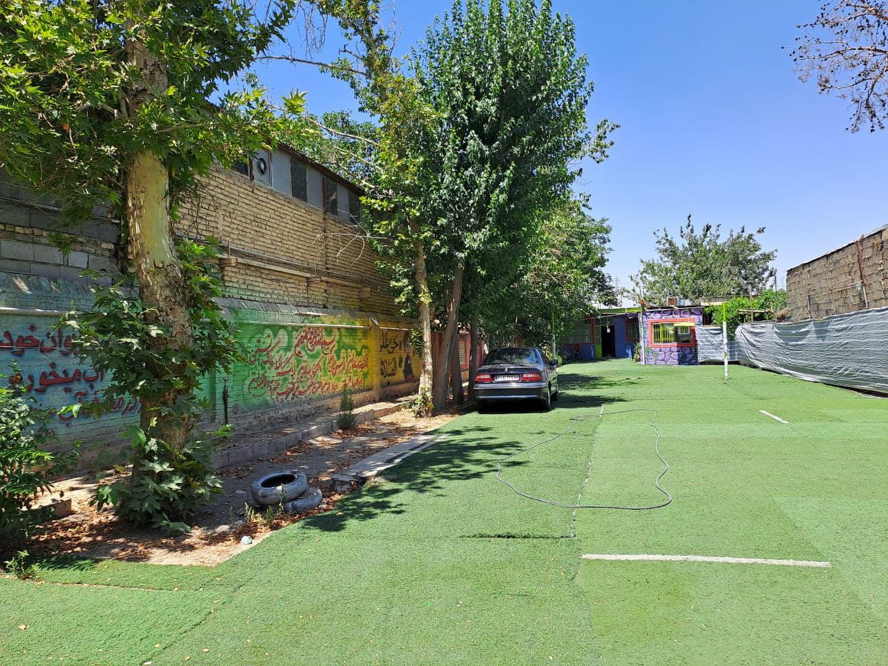 زمین ورزشی چندمنظوره مدرسه برای برگزاری انواع بازی‌ها و تمرینات ورزشی طراحی شده است و به سلامت جسمی و روحی دانش‌آموزان کمک می‌کند.